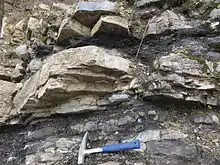 Section exposée de l'horizon Kellwasser dans la vallée de la Kellwasser. | ||