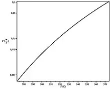 où est la pression, la pression de vapeur saturante, la masse molaire et un coefficient d'efficacité du phénomène dépendant de l'espèce et de la température (coefficient de « collage », en anglais « sticking coefficient ») tel que . est la constante universelle des gaz parfaits. peut prendre des valeurs comprises dans une large plage, d'une valeur proche de l'unité pour les métaux à des valeurs de l'ordre de 0,01 à 1 pour des liquides[11]. La valeur pour l'eau est voisine de l'unité[12].