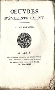 - C'est la forme choisie par Catriona Seth, Évariste Parny (1753-1814) Créole, révolutionnaire, académicien, Paris, Hermann, 2014. Présentation sur le site de l'éditeur.