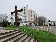 Un quartier stigmatise cet état de fait, les Pyramides. Projet lancé en 1971, construit sur un plan approximativement carré, autour d’un plan d’eau artificiel cerné par une place, et entouré par le vaste parc des Loges, avec une terrasse par appartement et des allées piétonnes, il devait permettre de renouer avec l’esprit village[42]. Le quartier est aujourd’hui classé zone urbaine sensible[43] et zone franche urbaine[44].