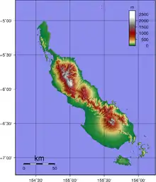 L'île est située tout au long d'une zone de subduction et est soumise occasionnellement à de forts séismes et des éruptions volcaniques, notamment de son principal volcan, le mont Bagana, actif en 2012 et de juillet à septembre 2023[1]..