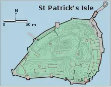 - (en) Cet article est partiellement ou en totalité issu de l’article de Wikipédia en anglais intitulé « St Patrick's Isle » (voir la liste des auteurs).