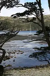 La végétation se compose de forêts de hêtres de Magellan (Nothofagus betuloides), de canelos (Drimys winteri), d'arbustes épineux comme les Berbéris à feuilles de buis (Berberis buxifolia). On trouve dans le sous-étage des fougères, des lichens et des mousses.