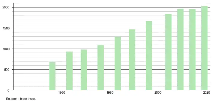 - Population municipale légale en vigueur au , millésimée 2019, définie dans les limites territoriales en vigueur au , date de référence statistique : .