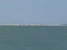 L'île sans nom à marée basse en 2022 depuis le sommet du phare. | ||||