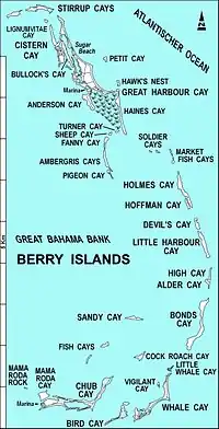 Berry Islands est l'un des 32 districts des Bahamas. Il porte le numéro 2 sur la carte.
