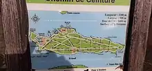 L'île Sainte-Marguerite est quadrillée de pistes et de sentiers ou « allées »[45] formant un réseau de chemins perpendiculaires permettant au promeneur de s'orienter facilement. Elle est en outre dotée de nombreux panneaux pédagogiques sur la faune et la flore locales et de plans d'ensemble de l'île. Un chemin de ceinture permet de réaliser le tour de l'île Sainte-Marguerite en 2h30 de marche effective, au plus près du rivage qui est agrémenté de nombreuses tables de pique-nique. Sur le même modèle mais plus court, le tour de l'île Saint-Honorat nécessite 50 minutes de marche effective.