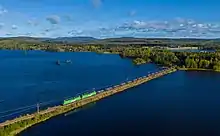 Un train de marchandises transportant de l'acier près de Björnsjö (sv),dans la commune de Örnsköldsvik. Septembre 2020.
