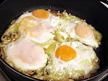 Il arrive aussi que certains œufs aient plusieurs jaunes à l'intérieur. Il existe par exemple des œufs commercialisés sous la mention « gros-œufs »[29] ou « maxi-œufs ». Ils sont plus gros que la moyenne et ont parfois deux jaunes à l'intérieur.