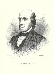 La ville, construit à l'emplacement du village Ruda Guzowska faisant partie de l'immense domaine de Guzów de la famille Łubieński, est baptisé d'après l'inventeur des machines à filer le lin, Philippe de Girard, ingénieur français né à Lourmarin.