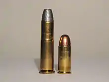 Une cartouche .32-20 Winchester (à gauche).