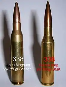 Le .338 Lapua Magnum est une munition d'usage militaire de calibre 8,58 × 70 mm pour les fusils de précision. Développée par l'entreprise finlandaise Lapua, cette munition a été créée par Nammo Lapua Oy en 1989.