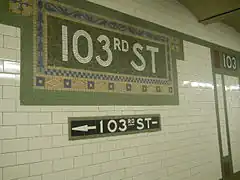 La station 103rd Street est une station du service de desserte 1 du métro de New York : elle est située entre la station Cathedral Parkway – 110th Street, en direction du terminus nord Van Cortlandt Park – 242nd Street, et la station 96th Street, en direction du terminus sud South Ferry – Whitehall Street[1].