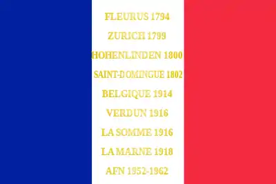 - Décision no 12350/SGA/DPMA/SHD/DAT du 14 septembre 2007 relative aux inscriptions de noms de batailles sur les drapeaux et étendards des corps de troupe de l'armée de terre, du service de santé des armées et du service des essences des armées, Bulletin officiel des armées, no 27, 9 novembre 2007.
