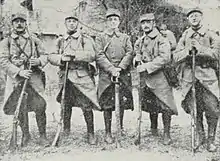 Le chef de bataillon Rousseau et les commandants de compagnie du 120e BCP en août 1915. | |