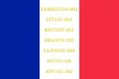 Les noms de huit batailles [réf. nécessaire] s'inscrivent en lettres d'or sur le drapeau, ainsi que l'inscription A.F.N[2],[3].