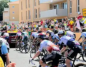 | Le peloton après le départ fictif à Châtillon-sur-Chalaronne. | ||||||||||||||||||||||||||||||||||||||||