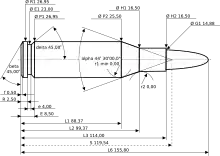 Les canons qui tirent cette cartouche disposent de huit rayures au pas de 455 mm. [Ø intérieur = 14,5 mm, Ø en fond de rayure = 14,95 mm).