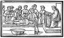 - Vers 1457 : Jacopo Berengario da Carpi (mort en 1530), médecin, anatomiste et chirurgien italien, dont les Commentaires sur Mondino (1521) sont le premier traité imprimé comportant des illustrations anatomiques[9],[10].