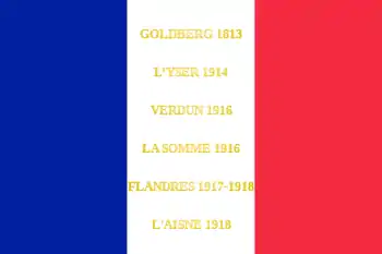 Les noms des batailles s'inscrivent en lettres d'or sur le drapeau[3] (voir encadré) :