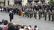 Le drapeau du 14e RCS lors d'une cérémonie.