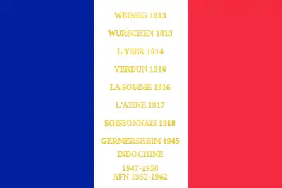 Weissig 1813 Wurschen 1813 L'Yser 1914 Verdun 1916 La Somme 1916 L'Aisne 1917 Soissonnais 1918 Germersheim 1945 Indochine 1947–1950 AFN 1952-1962 |