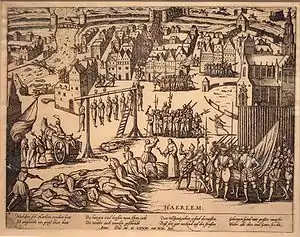 - 12 juillet : le duc d’Albe prend Haarlem après sept mois de siège[19].