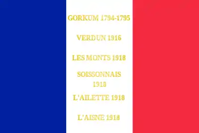 Les noms de huit batailles s'inscrivent en lettres d'or sur le drapeau[23] :