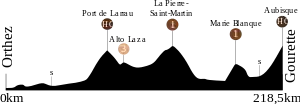 - La Pierre Saint-Martin, La Mouline, Arette, Issor, la route longe le gave d'Aspe, Escot, Col de Marie-Blanque (1re catégorie)