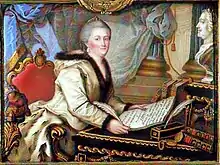 - 26 septembre : arrivée à Saint-Pétersbourg du physiocrate Mercier de la Rivière[31]. Catherine II de Russie tourne en ridicule ses projets de réforme dans sa pièce « l’Antichambre d’un boyard illustre ».