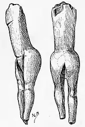 La Venus impudique de Laugerie-Basse, première des Vénus paléolithique découverte en 1864 par le marquis de Vibraye[33]. Magdalénien moyen. Dessin de 1907.