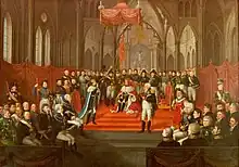 - 29 septembre - 21 novembre : congrès d’Aix-la-Chapelle[41]. Il met fin à l’occupation de la France et lui reconnaît un statut de grande puissance en l’intégrant dans la Sainte-Alliance.