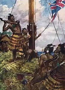 - 8 juillet : le chef māori Hone Heke abat le mat de l'Union Jack[28]. Début d'un soulèvement infructueux des Māori contre le Royaume-Uni en Nouvelle-Zélande (Flagstaff War, fin en 1848).