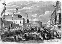 - 16-28 mai : série d’incendies à Saint-Pétersbourg[60]. Le pouvoir russe en profite pour dénoncer les agissements nihilistes. Nombreuses arrestations (Pisarev, Tchernychevski). La société Zemlia i Volia est démantelée (dissoute en 1864).