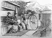 Thomas Stevens au Japon. Illustration tirée du livre sur ses voyages.