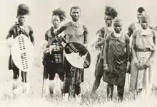 Le chef Bambatha entouré de guerriers Zoulous, 1906.