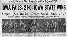Prix Pulitzer de photographie : John Robinson et Don Ultang, pour une séquence de six photographies publiées dans le quotidien The Des Moines Register le représentant un match de football américain à la Drake University au cours duquel la mâchoire du joueur afro-américian Drake Johnny Bright a été délibérément brisée[6].