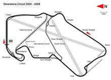 Schéma de voie du circuit de Silverstone au Royaume-Uni dans la configuration de 2004 à 2009. Réalisé à l'échelle à partir de photographies aériennes.