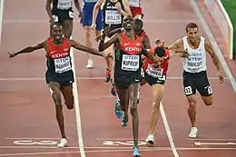 Lors des championnats du monde 2017, à Londres, Elijah Manangoi remporte la médaille d'or du 1 500 m deux ans après avoir obtenu l'argent. Il réalise le temps de 3 min 33 s 61 et devance son compatriote Timothy Cheruiyot (3 min 33 s 99) et le Norvégien Filip Ingebrigtsen (3 min 34 s 53)[8]. Asbel Kiprop, triple tenant du titre, se classe neuvième de l'épreuve.