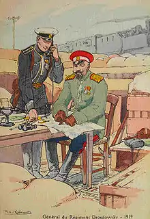 Le le général Markov, commandant alors la première division d’infanterie de l’armée des volontaires, tomba lors des combats pour la halte ferroviaire de Chablievka. Lors de l’appel le commandant du régiment colonel N. Timanovski déclara :