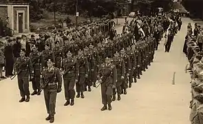 Le , un grand honneur échut à notre Régiment. Parmi tous les emblèmes de l’armée belge, c’est notre étendard qui fut choisi pour accueillir et escorter le Roi Léopold III à son retour d’exil. Hommage rendu par les plus hautes autorités du Royaume à la Tradition et à la Fidélité. , la situation internationale n’est pas de tout repos.