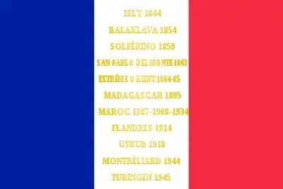 Les noms des batailles s'inscrivent en lettres d'or sur l'étendard[12] :