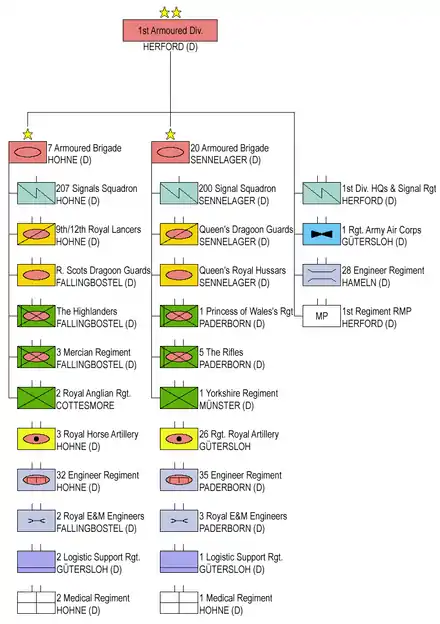 En 1993, la 1re division blindée (1st (UK) Armoured Division) est formée à partir de la 4e division blindée et fait partie des forces britanniques en Allemagne.