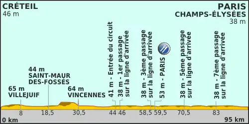Le départ fictif fut donné de la préfecture de Créteil à 14h30 et le départ réel lancé à 14h50 de Créteil sur la Route nationale 19.
