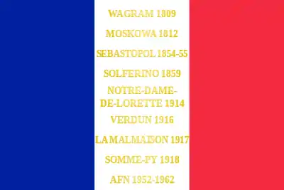 Wagram 1809 Moskowa 1812 Sébastopol 1854-55 Solférino 1859 Notre-Dame De-Lorette 1914 Verdun 1916 La Malmaison 1917 Somme-Py 1918 AFN 1952-1962 |