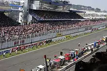 - le dimanche matin, le circuit est quasiment déserté par le public, la course bat son plein. À 15 h, fin de la course et ouverture de la piste au public, qui envahit la ligne droite des tribunes pour accéder au podium.