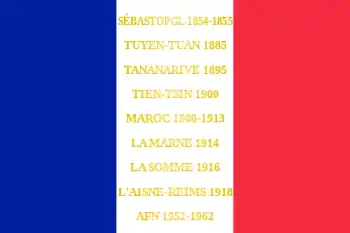 Sébastopol 1854-1855 Tuyen-Tuan 1885 Tananarive 1895 Tien-Tsin 1900 Maroc 1908-1913 La Marne 1914 La Somme 1916 L'Aisne-Reims 1918 AFN 1952-1962 |