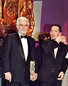 Omar Sharif, lauréat du César du meilleur acteur pour Monsieur Ibrahim et les Fleurs du Coran, en compagnie de Gad Elmaleh.