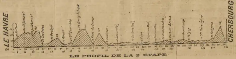 Les coureurs relient Le Havre, en Seine-Inférieure, à Cherbourg, dans la Manche, au terme d'un parcours de 364 kilomètres.