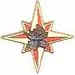Écu français ancien chargé d'une carte de France du premier métal à une croix de Lorraine du même ombrée d'azur accompagnée de ses pays frontaliers de turquin, des mers du même ondées d'or.